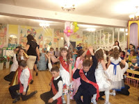 А девочки закрепили слова Богатырей, исполнив «Танец с обручами». В общем, наши выпускники доказали Вовке, что готовы идти в школу. Кульминацией праздника было исполнение ребятами прощального вальса.