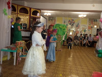 Они исполняли замечательные песни, читали стихи, и , самое интересное, были участниками и действующими героями сказки «Вовка в тридевятом царстве». На пути главного героя Вовки – (роль исполняла Н.Н. Константинова) повстречались Василисы Премудрые (роли исполняли девочки). Они доказали ему, что наши дети знают не только буквы и цифры, но и умеют красиво петь и танцевать.